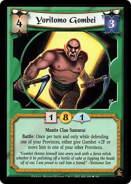 The Four Winds Era (Gold) 1,000 Years of Darkness A Perfect Cut An Oni's Fury Broken Blades Dark Allies Gold Edition Golden border promos Heaven & Earth L5R Experience Promos Gold (2000-2002) Promos Gold & Diamond (2002-2003) The Fall of Otosan Uchi Winds of Change